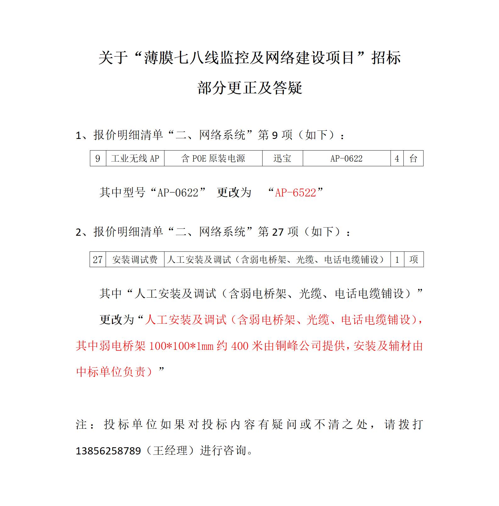 銅峰薄膜七八線監(jiān)控及網(wǎng)絡(luò)項目—招標(biāo)清單更改及答疑