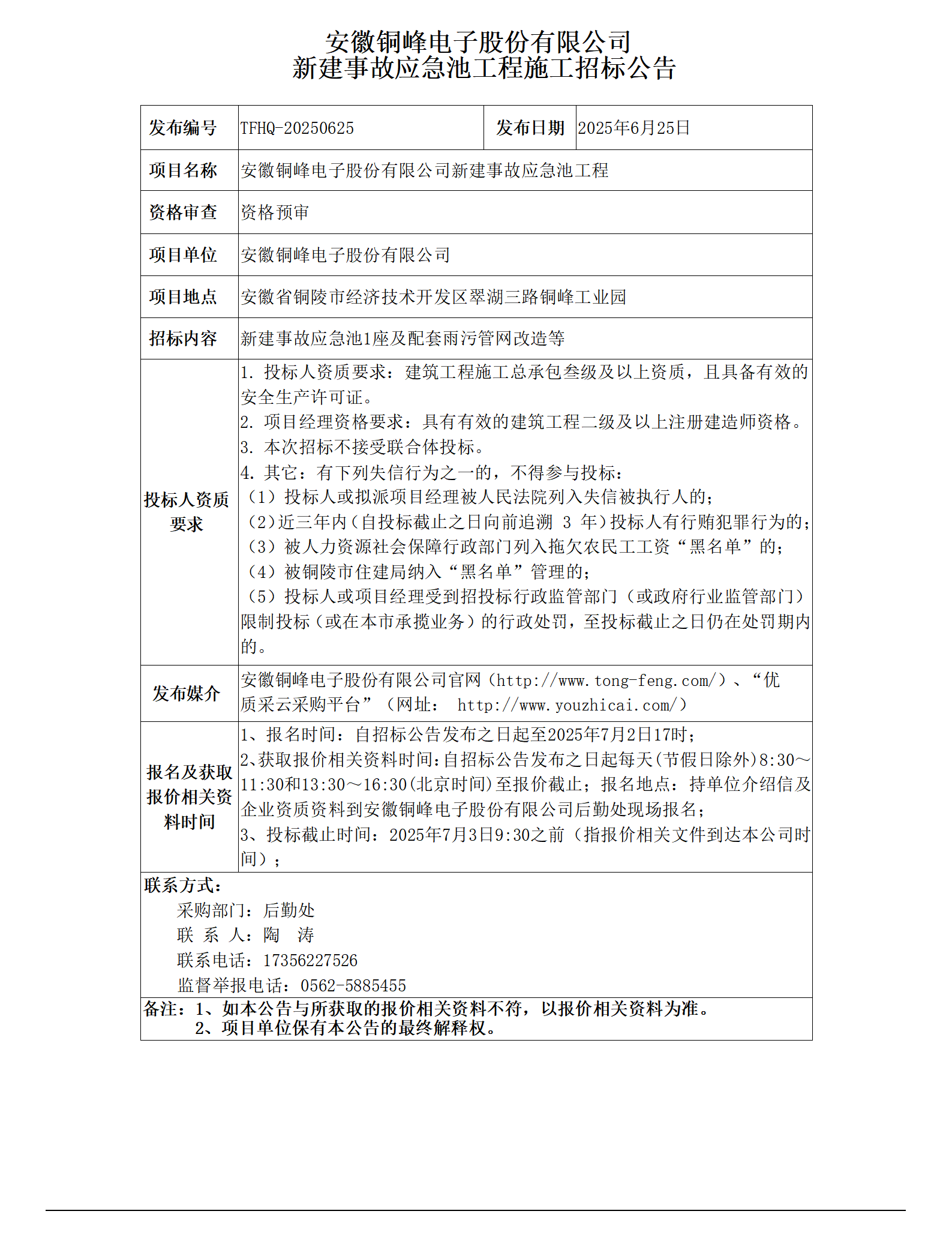 安徽銅峰電子股份有限公司 (銅峰電子事故應(yīng)急水池工程招標公告)_01