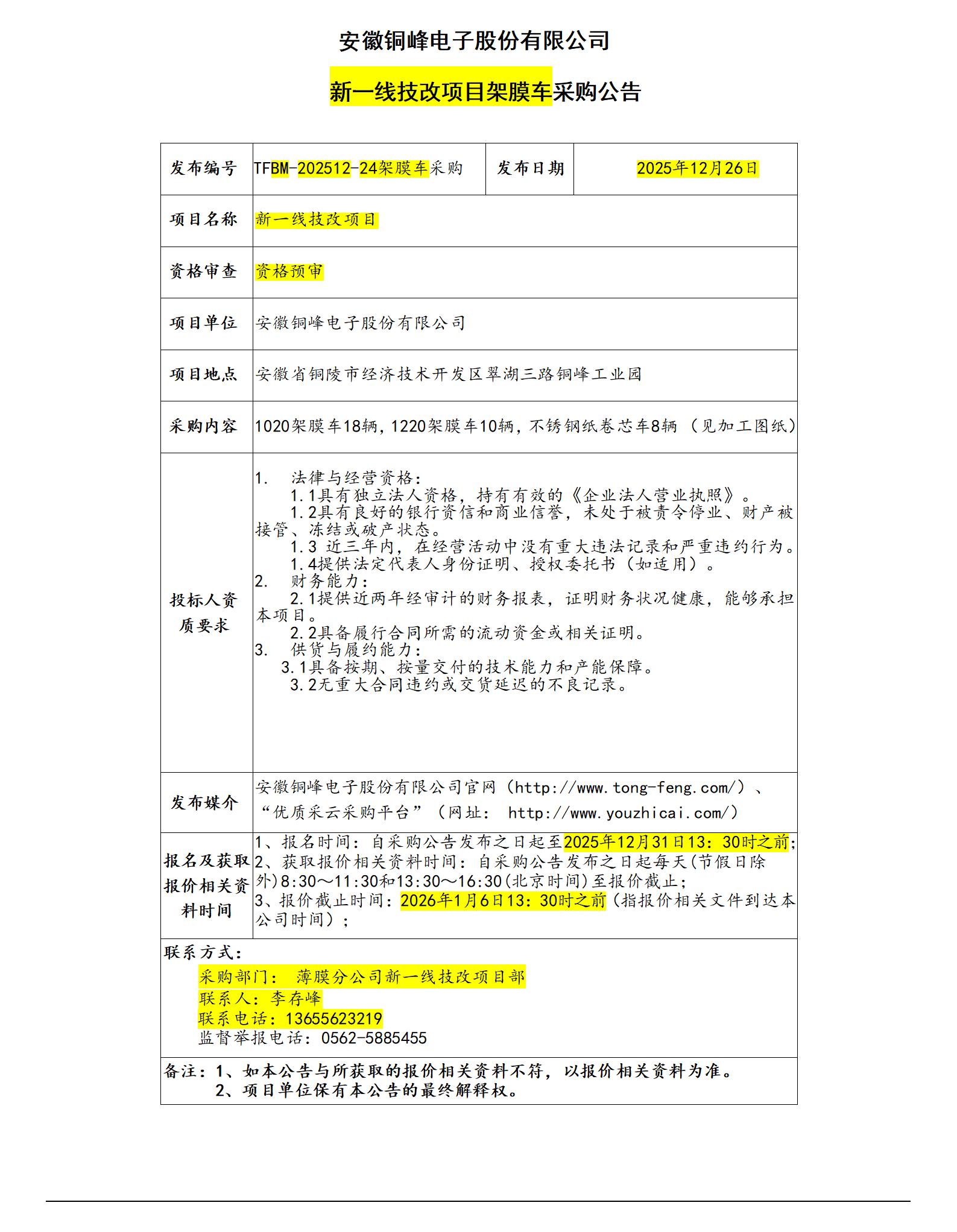 安徽銅峰電子股份有限公司 (新一線架膜車(chē)采購(gòu)招標(biāo)公告)_01