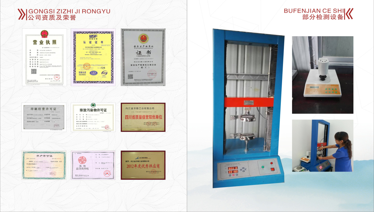 公司屬于《水泥包裝袋定點(diǎn)生產(chǎn)企業(yè)》,現(xiàn)有員工208名,配備優(yōu)秀的管理團(tuán)隊(duì)和專業(yè)的技術(shù)骨干人才,設(shè)備配置高端、生產(chǎn)工藝先進(jìn)、產(chǎn)品質(zhì)量穩(wěn)定。嚴(yán)格執(zhí)行7S管理,通過(guò)了安全和質(zhì)量管理體系認(rèn)證,取得了《安全生產(chǎn)標(biāo)準(zhǔn)化》和 《ISO9001:2015質(zhì)量管理體系》等證書(shū);獲得《四川省質(zhì)量信譽(yù)雙優(yōu)單位》和《優(yōu)秀供應(yīng)商》等榮譽(yù)稱號(hào)。